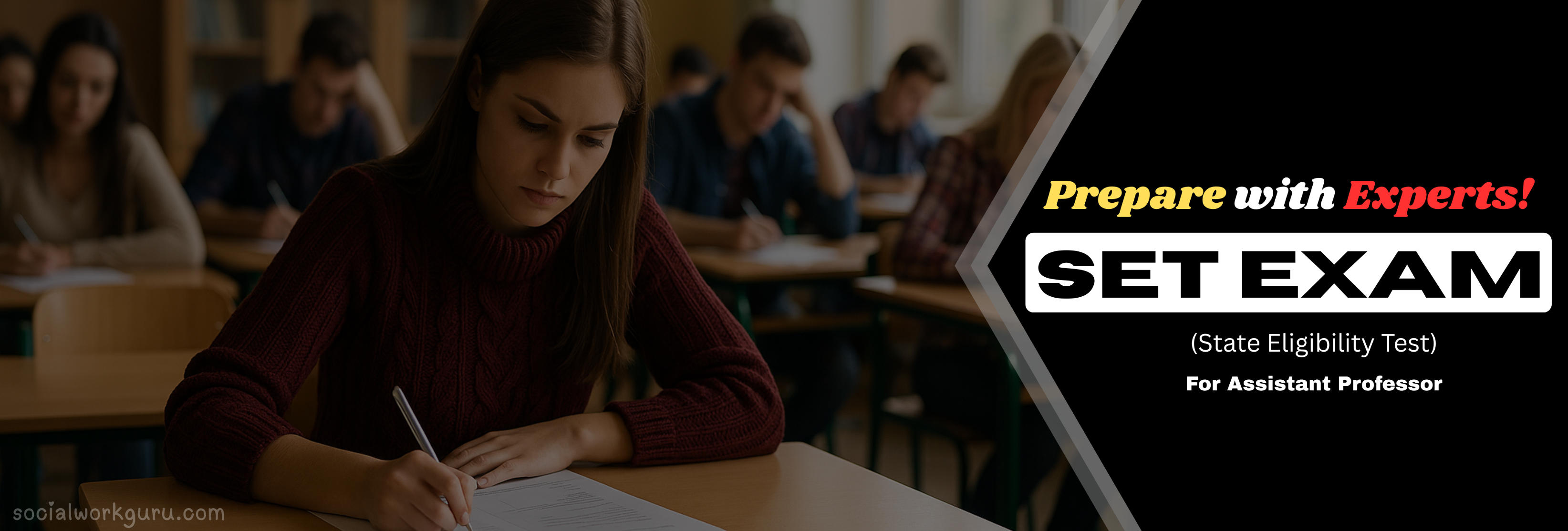 Information of all major SET exams for social work including: MH-SET (Maharashtra), MP-SET (Madhya Pradesh), TS-SET (Telangana), AP-SET (Andhra Pradesh), WB-SET (West Bengal) and more!
